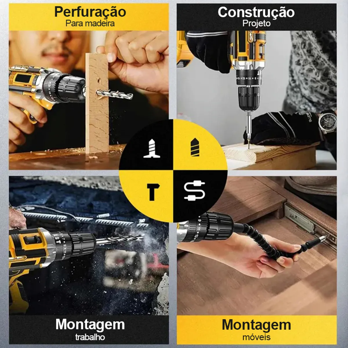 Compacta, ergonômica e extremamente funcional, permite perfurar e parafusar com precisão em madeira, metal e plástico, garantindo conforto mesmo em usos prolongados.